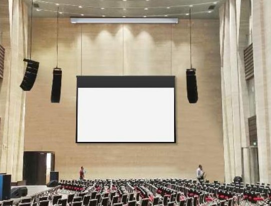 Tässä tapauksessa tarvittiin valoisaan auditorioon hyvä kuva. Ratkaisuna oli 320x200cm kuva johon yhdistelmänä vain 4200alm tykki tuotti kontrasti 15:1 ja riittävän kirkkauden. Lopputulos on erittäin vakuuttava ja paketin hinta on noin 10 - 12 000€.